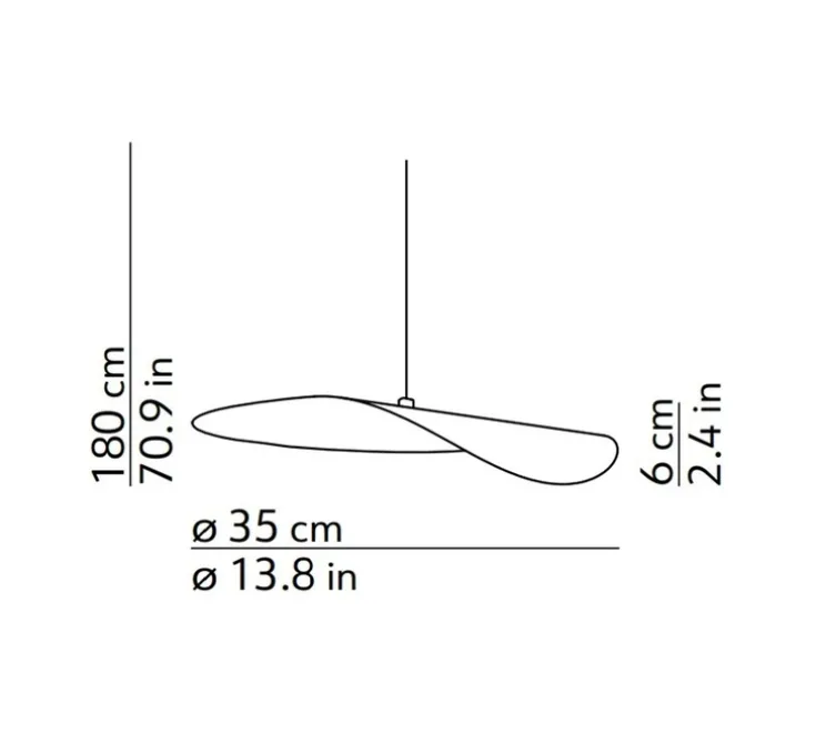 L’accessoire suspendu mesure 35 cm de diamètre et 6 cm de hauteur. Pas de source lumineuse pour cet accessoire. Montage au plafond.