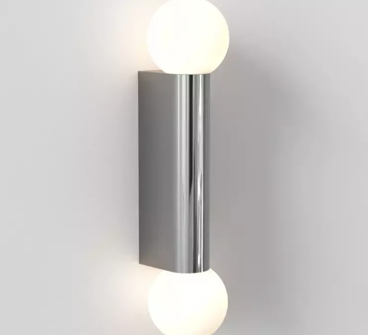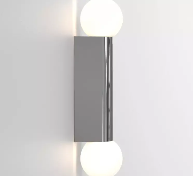 Découvrez l’applique pour salle-de-bain Ortona Twin, finition chrome poli, imaginée par le studio de la célèbre maison britannique Astro.