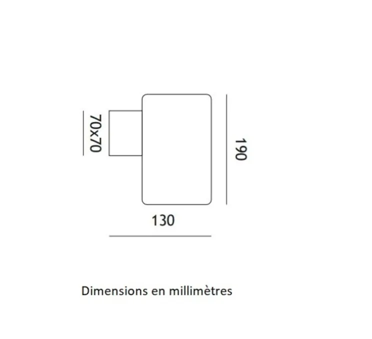 L’applique mesure 19 cm de hauteur et 13 cm de diamètre. La base mesure 7 cm x 7 cm.