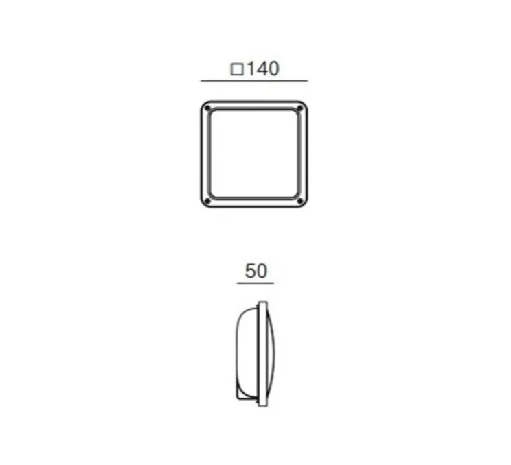 L’applique mesure 14cm de côté et 5cm d’épaisseur. La source lumineuse n’est pas fournie. Nous recommandons une ampoule Gx53, 6W max.