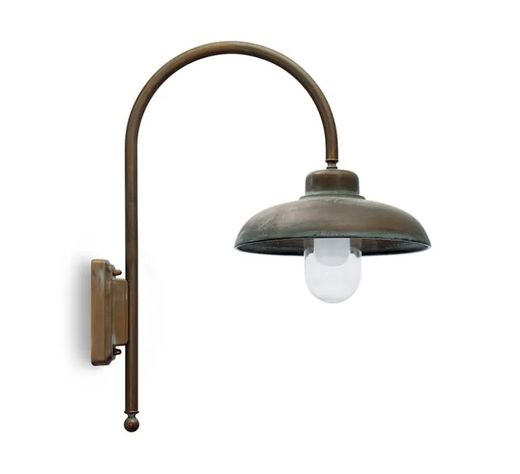 Le laiton chez Moretti Luce c’est 60% cuivre et 40% de zinc. Ce qui permet aux luminaires d’être installés dans des environnements très agressifs et dans les conditions atmosphériques les plus difficiles comme les zones côtières (sel marin) ou de montagne (températures extrêmement basses et neige). Les composants de ce luminaire sont en matière naturelle et « vivante ». Ainsi, à l’épreuve du temps, le luminaire peut revêtir un aspect vieilli qui lui donne tout son charme.