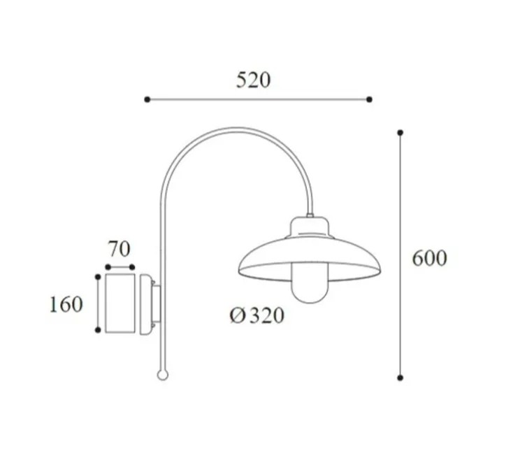 Samoa 1770 mesure 30 cm de longueur et 60 cm de hauteur. La source lumineuse n’est pas incluse, nous vous recommandons une ampoule Led E27.