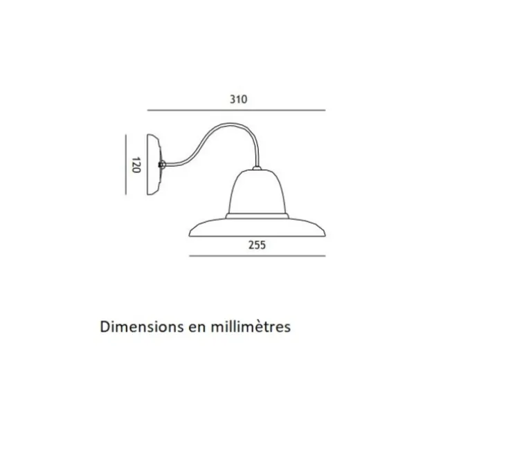 L’applique mesure 31 cm de profondeur et 25,5 cm de diamètre. La base mesure 12 cm.
