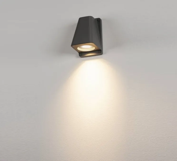 Avec ses dimensions compactes (L10cm x H15,3cm) et son indice de protection IP44, l’applique Wallyx offre une installation facile et une résistance optimale aux conditions extérieures. La source lumineuse n’est pas incluse, nous vous recommandons une ampoule GU10.