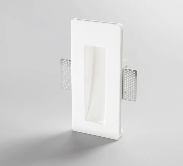 Ce modèle blanc, en plâtre prêt à peindre, s’intègre parfaitement aux murs en plaques de plâtre pour un rendu homogène et discret. Son design rectangulaire renforce une architecture minimaliste et contemporaine. Idéal pour souligner des escaliers, couloirs ou passages, il offre une lumière directionnelle subtile qui structure l’espace sans l’encombrer.