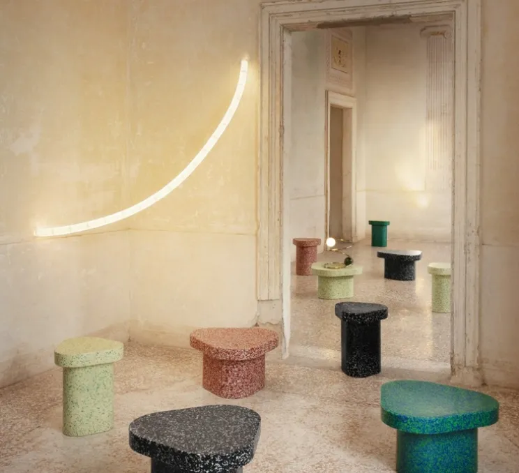 Le Tratti 566.72 se distingue par son caractère sculptural et organique, alliant légèreté et finesse. Son aspect légèrement granuleux, perceptible même lorsqu’il est éteint, confère une présence subtile à l’espace, tout en offrant un éclairage doux et diffus. Grâce à son système modulaire, il s’intègre harmonieusement dans différents types d’intérieurs, aussi bien en applique qu’en plafonnier. L’éclairage se diffuse à 360 degrés, créant ainsi une ambiance enveloppante, idéale pour des espaces à la fois modernes et élégants.