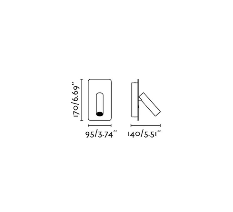 Sa hauteur est de 17cm et sa profondeur encastrable incluant sa liseuse est de 14cm rendant cette applique discrète.