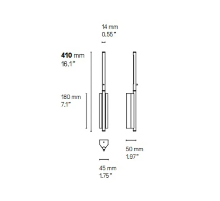 La liseuse Link mesure 41 cm de hauteur et 5 cm de largeur. Elle est fournie avec sa source de lumière LED dimmable, 360 lumens et 2700 kelvins. Le variateur est inclus dans la base