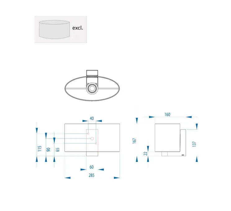 L’applique mesure 16,7 cm de hauteur, 28,5 cm de longueur et 16 cm de profondeur. L’ampoule E27 led d’une puissance maximale de 12W n’est pas fournie mais est recommandée pour le bon fonctionnement du luminaire. Driver non requis. Dimmable Casambi et compatible Smart Lighting ( avec Casambi Relay non fourni). Pas d’interrupteur. Montage mural horizontal.
