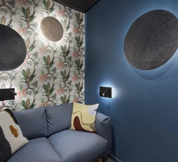 Les sources lumineuses (2x LED intégrées, 15W max, 3000K, 490lm) sont incluses. Somnila possède une liseuse orientable pouvant être placée dans la position de son choix. Elle possède aussi une deuxième source lumineuse et projette une source indirecte contre le mur.