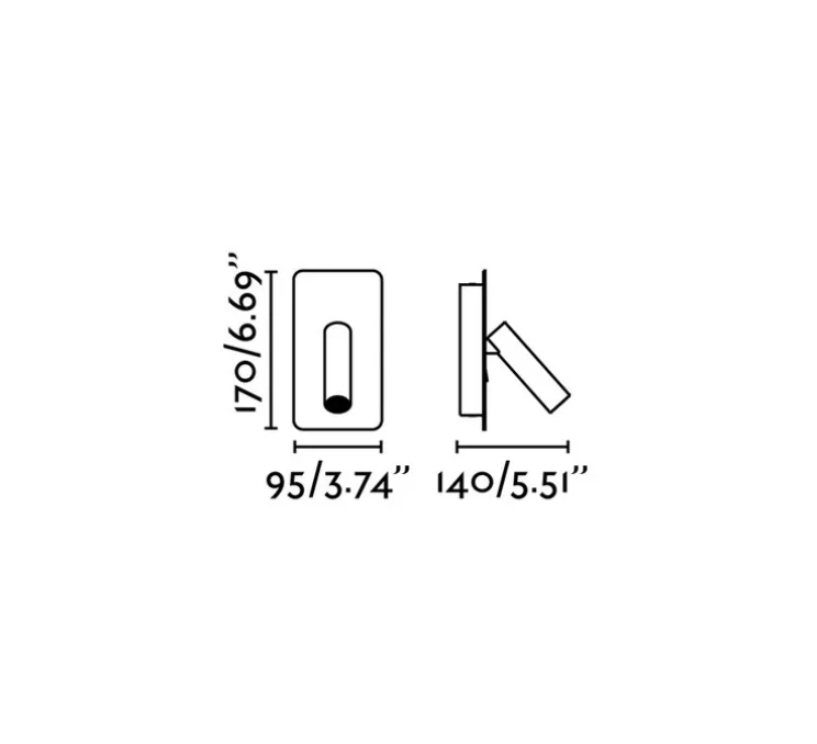 Sa hauteur est de 17cm et sa profondeur encastrable incluant sa liseuse est de 14cm rendant cette applique discrète. Sa profondeur est de 14cm