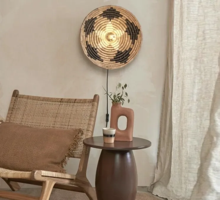 Au design circulaire et naturel, elle offre une esthétique chaleureuse et épurée. Fabriquée à partir de matériaux durables, cette applique incarne un équilibre entre artisanat et respect de l’environnement.