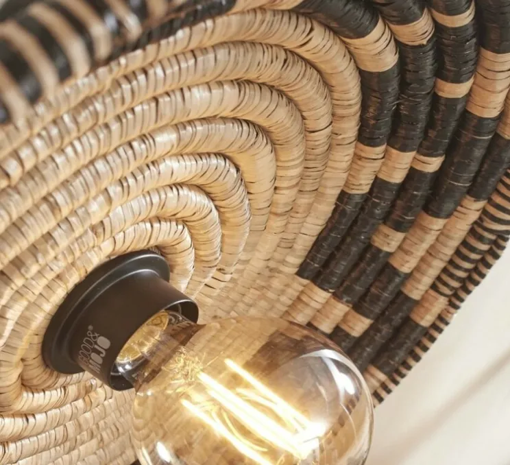 Avec sa finition noire et naturelle et composée d’herbes de mer et de métal, l’applique Andros apporte une touche organique à n’importe quelle pièce, que ce soit dans un salon, une chambre ou un couloir. Son diamètre de 45 cm et sa hauteur de 11 cm en font un élément décoratif fort qui diffuse une lumière douce et apaisante. En choisissant cette applique, vous optez pour un éclairage qui conjugue esthétique responsable et ambiance chaleureuse.