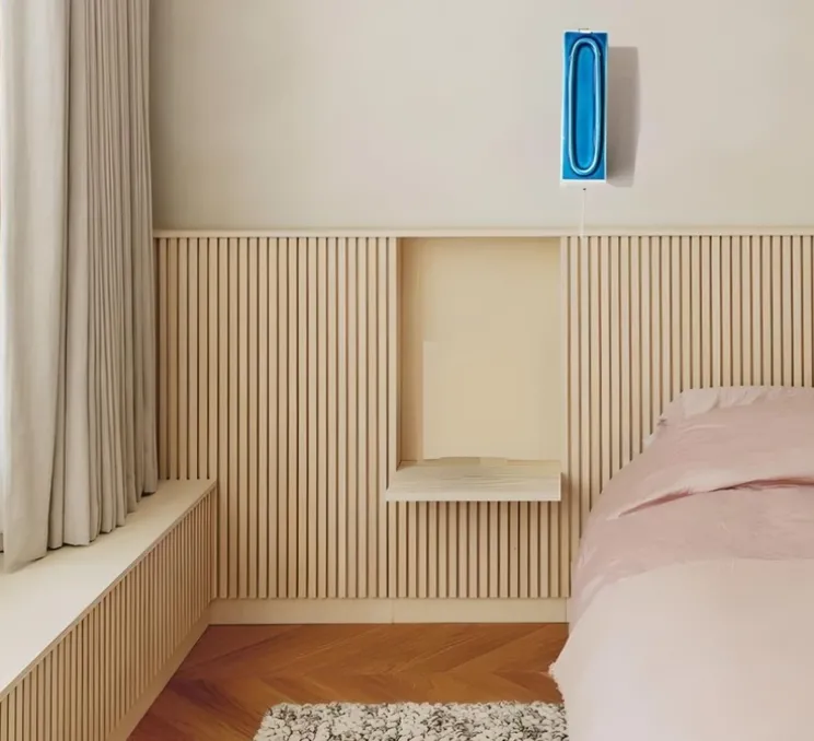L’applique murale Arty bleue, issue de la collection imaginée par Coline Leleu, décoratrice d’intérieur, et Sébastien Carette, artisan designer, incarne un design graphique intemporel.