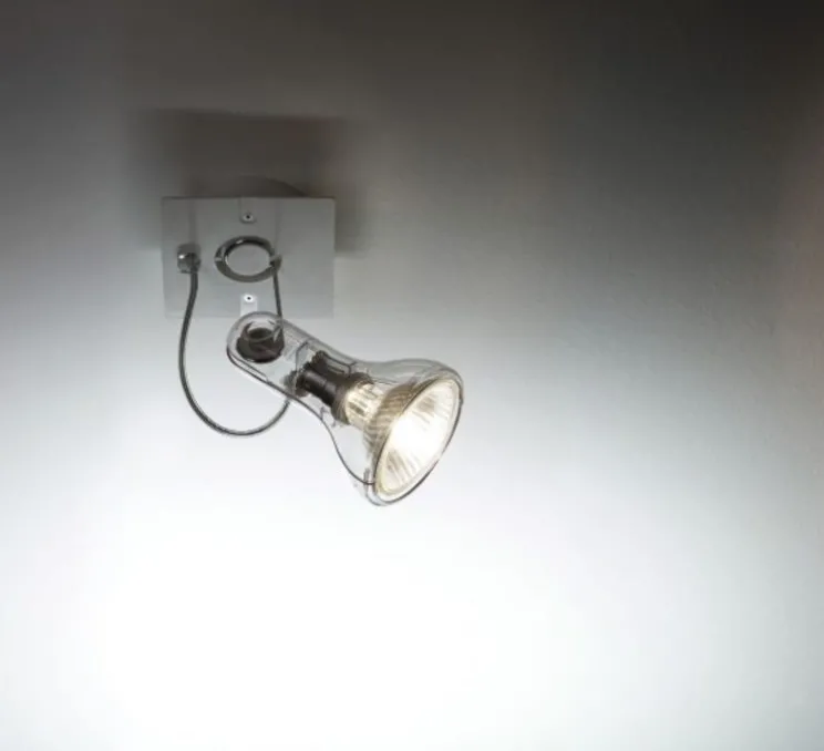 L’aspect du polycarbonate transparent lui permet une discrétion absolu. Ce petit spot mesure 23cm de profondeur du mur ou plafond jusqu’à la tête du diffuseur et 11cm de diamètre. Équipée d’une douille E27, changez facilement l’ampoule de l’applique quand cela est nécessaire.