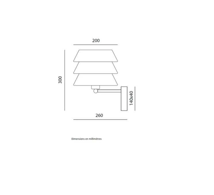 L’applique mesure 20 cm de diamètre, 30 cm de hauteur et 26 cm de profondeur. La base mesure 14x4cm.