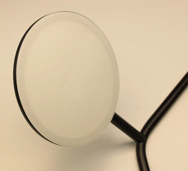 – Grand disque : en acier laqué noir ou blanc, ou en bois de chêne ou noyer.