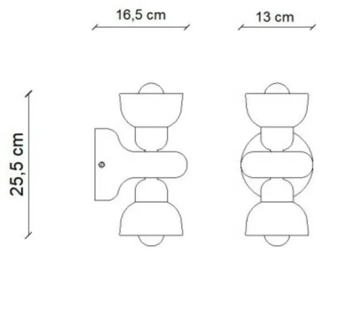 L’applique mesure 25,5cm de hauteur et chaque abat-jour à un diamètre de 13cm.