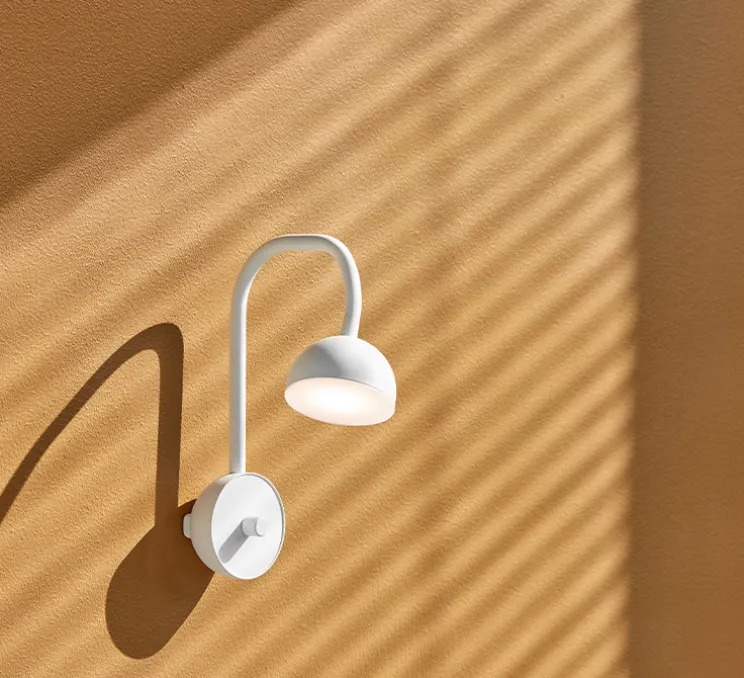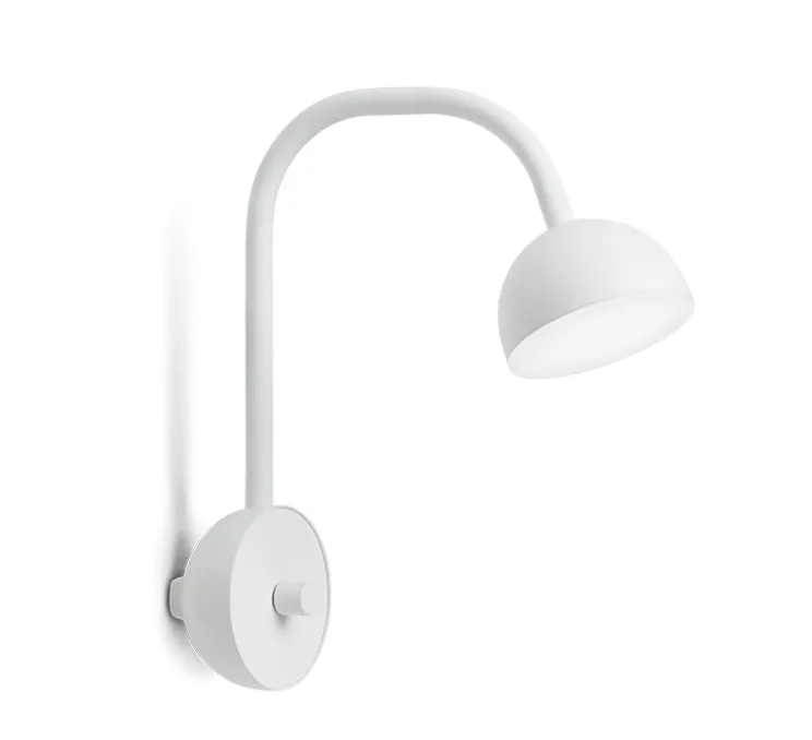 La lampe Blush est composée d’une base murale avec bouton variateur et câble, d’un bras flexible et d’une tête semi-sphérique intégrant la source lumineuse. Discrète et élégante, Blush s’intègre aisément à chaque intérieur, que ce soit dans un coin lecture, en tête de lit ou au-dessus d’un bureau.