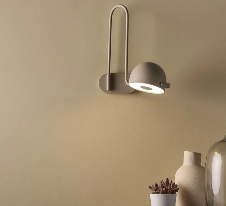 Cette applique murale LED avec abat-jour semi-sphérique est composé d’un module LED diffusant 2700K et 1050lm. Pour tous les modèles, la source de lumière peut être orientée sur l’axe horizontal et émet une lumière directe et diffuse. Finitions disponibles: bronze anglais métallique, turquoise mat et beige mat.