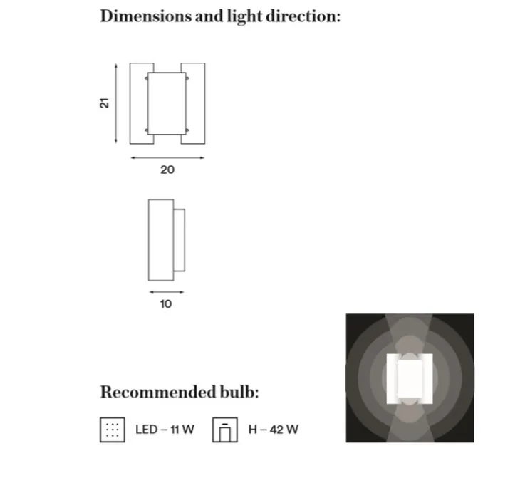Nous préconisons pour cette applique une ampoule LED E27 de 11W.