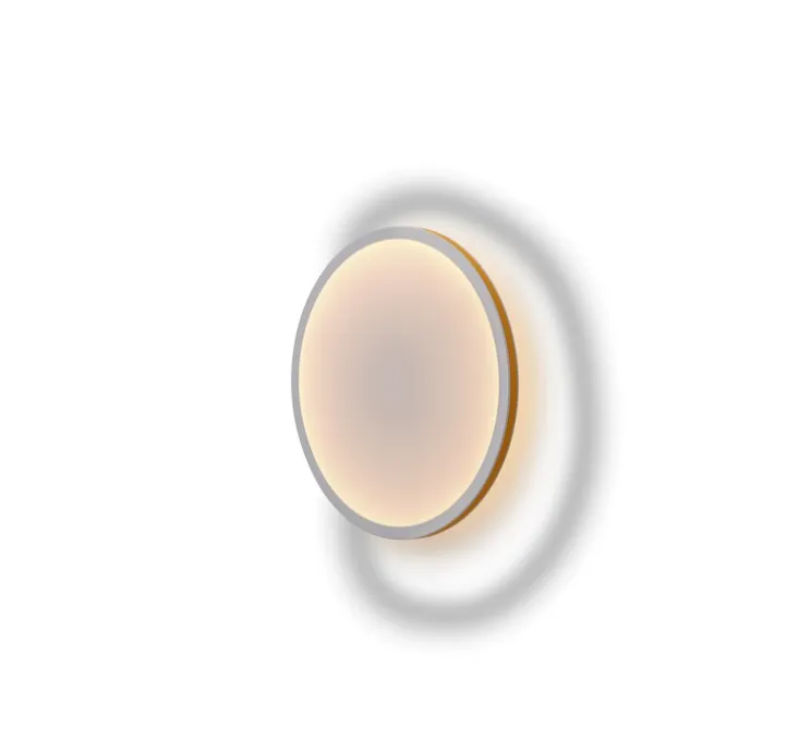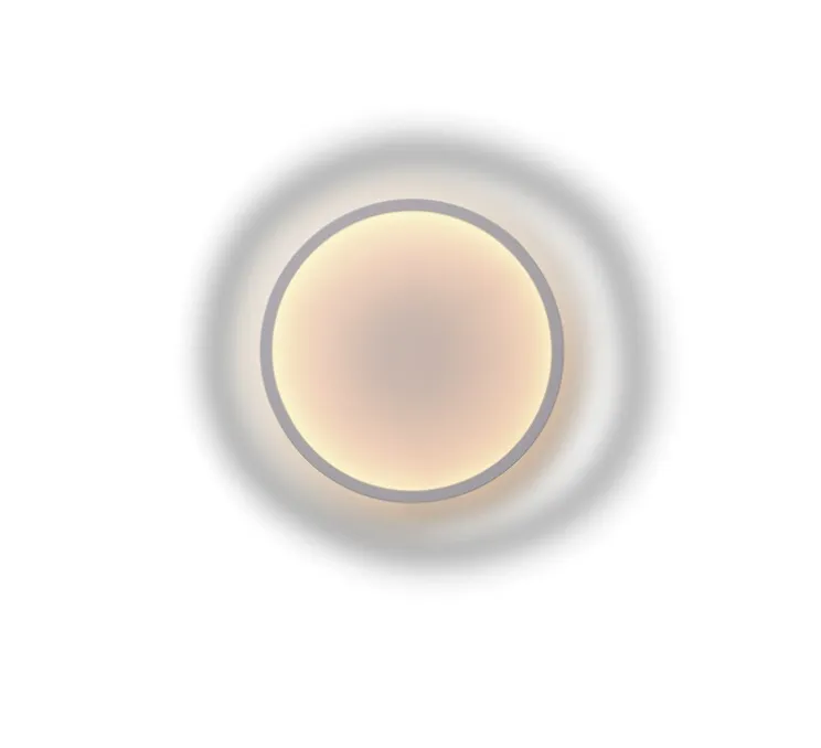L’applique offre un design simple et épuré avec une surface textile diffusant une lumière dans toutes les directions. La particularité de l’éclairage repose sur un halo lumineux formant un gradient autour du bord vers le centre de l’applique.