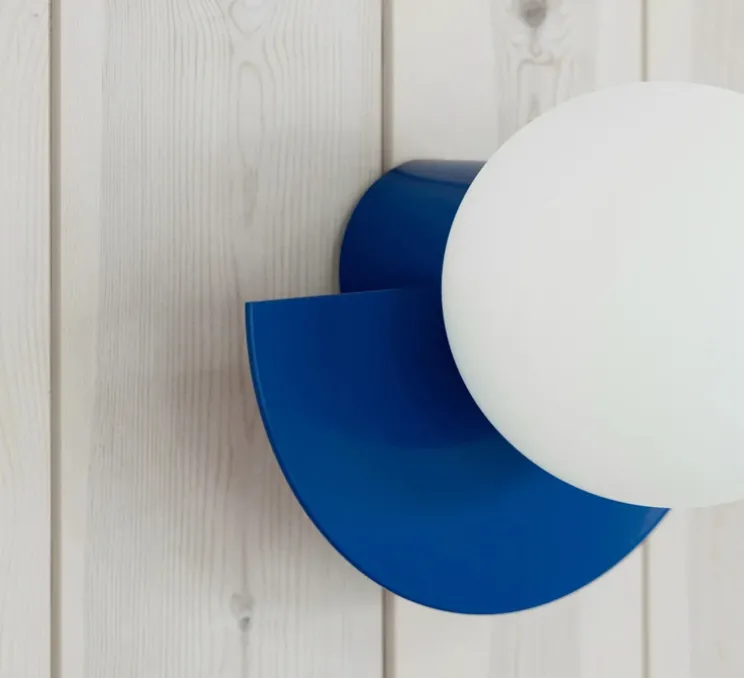Découvrez l’applique Candy little circle 180 S signée de la designer Petra Lilja pour la maison Swedish Ninja dans sa nouvelle finition bleu électrique.