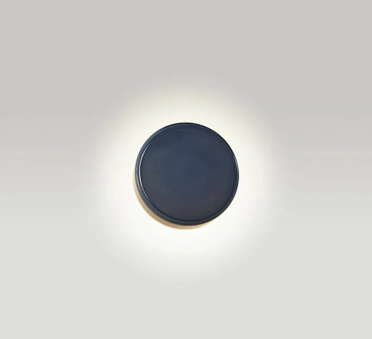 Son design circulaire et sa finition bleue, associée à un diffuseur en polycarbonate et verre soufflé, lui confèrent une allure rétro et épurée. L’applique projette une lumière douce et chaude sur le mur, créant une ambiance chaleureuse. Idéale pour les espaces intérieurs, elle peut être utilisée dans un salon, un hall d’entrée ou un bureau pour ajouter une touche élégante et discrète à la décoration. Éteinte, elle devient un élément graphique qui valorise le mur.