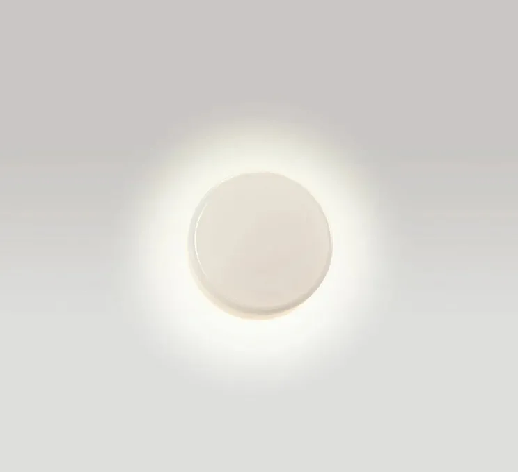 Son design circulaire et sa finition en opale, associée à un diffuseur en polycarbonate et verre soufflé, lui confèrent une allure rétro et épurée. L’applique projette une lumière douce et chaude sur le mur, créant une ambiance chaleureuse. Idéale pour les espaces intérieurs, elle peut être utilisée dans un salon, un hall d’entrée ou un bureau pour ajouter une touche élégante et discrète à la décoration. Éteinte, elle devient un élément graphique qui valorise le mur.