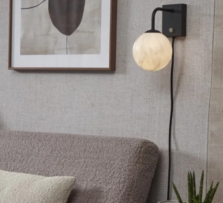 Cette jolie applique composée d’une sphère en verre à la finition en marbre blanc ainsi que d’une base en métal noir, habille votre intérieur avec élégance.