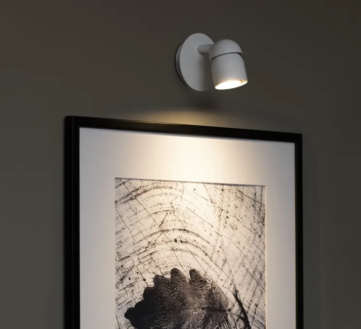 Une ampoule LED GU10 à la puissance de 8W maximum est recommandée. L’applique possède un indice de protection IP20.