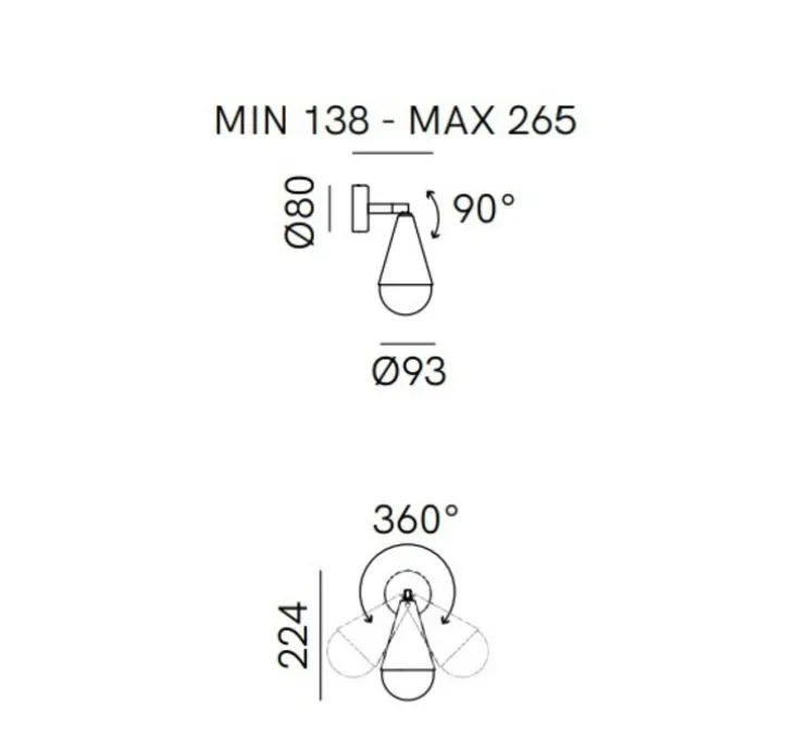 L’applique mesure 9,4 cm de diamètre. La source lumineuse n’est pas fournie. Nous recommandons une ampoule type G9, 5W max.