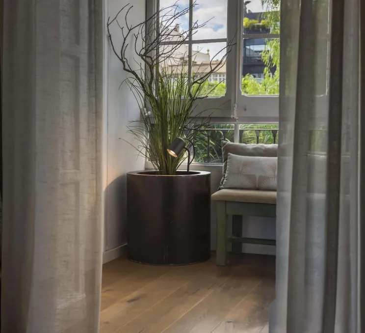 Fabriqué en métal, ce luminaire possède un IP65 et résiste donc aux fortes intempéries. Flow est une lampe multifonctions : ce luminaire peut être placé en applique ou en borne à planter au sol. C’est à vous de décider !