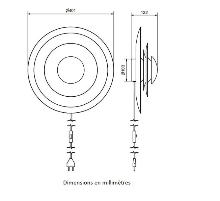 Le câble mesure 2,2 mètres, l’interrupteur se trouve sur le câble.