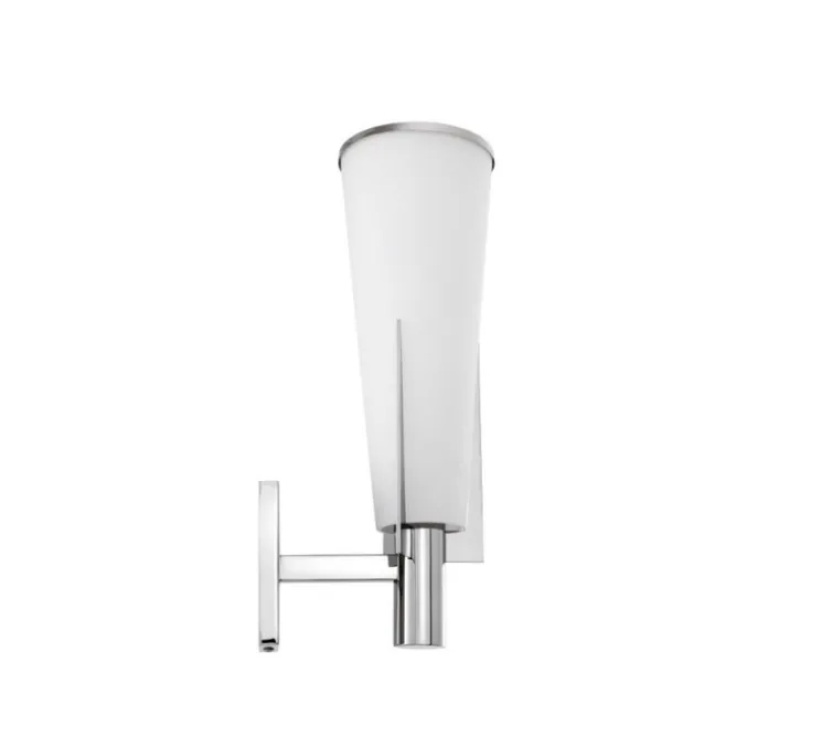 D’une qualité de fabrication exceptionnelle, la lampe murale Dino répond à la fois aux goûts classiques et modernes. Sa finition nickel brillant est associée à un design géométrique audacieux qui évoque l’esthétique rétro des années 1950 et 1960. Un abat-jour architectural conique en verre blanc avec un bord en nickel complète son look moderne du milieu du siècle.