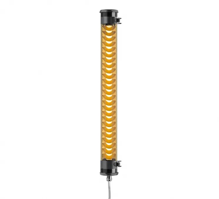 Le luminaire Elgar est composé d’un long corps tubulaire transparent, d’un réflecteur laiton, de colliers et flasques couleur charbon et d’une grille inclinée vers le bas qui voile la lumière tout en la réfléchissant. Intemporelle et emblématique, Elgar s’intègre dans chaque espace intérieur ou extérieur, que ce soit individuellement dans un couloir ou en répétition aux bords d’une piscine.