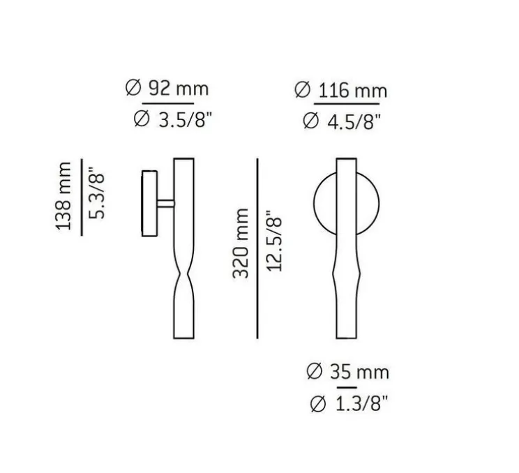 L’applique mesure 32 cm de haut, 11,6 cm de longueur et 9,2 cm de profondeur. Le module LED intégré a une puissance de 6,1W et diffuse 565 lumens avec une colorimétrie de 2700K. Non variable. Montage mural uniquement.