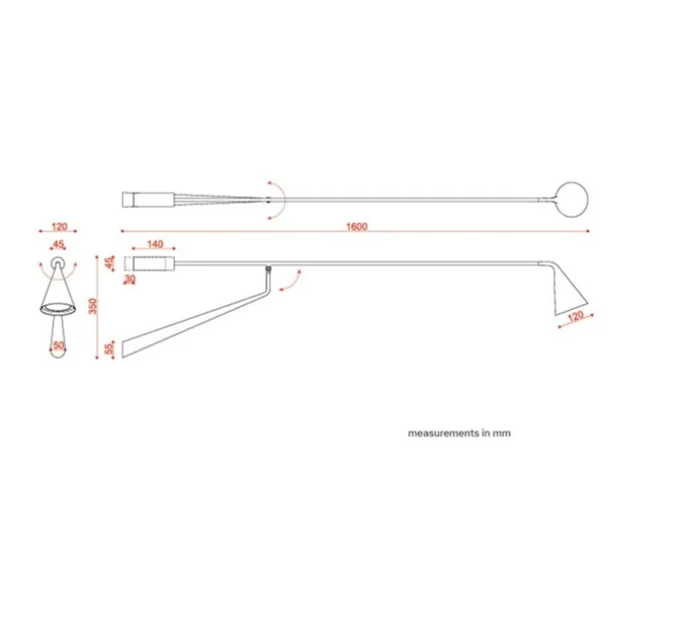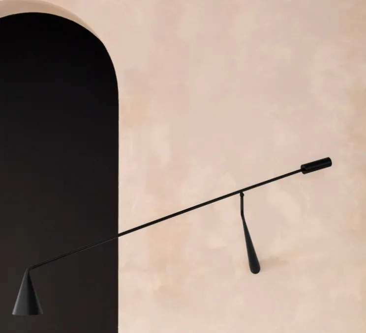 Avec sa finition en noir mat et son diffuseur conique revisité, cette applique au design architectural affirme une silhouette longiligne sobre et graphique. L’équilibre visuel est renforcé par l’intégration d’une tige articulée à contrepoids, qui offre une liberté d’ajustement et une présence décorative subtile. Elle s’adapte avec aisance aux environnements résidentiels ou professionnels, du salon à l’espace d’accueil.