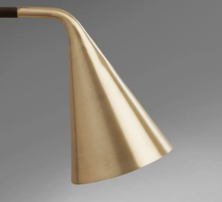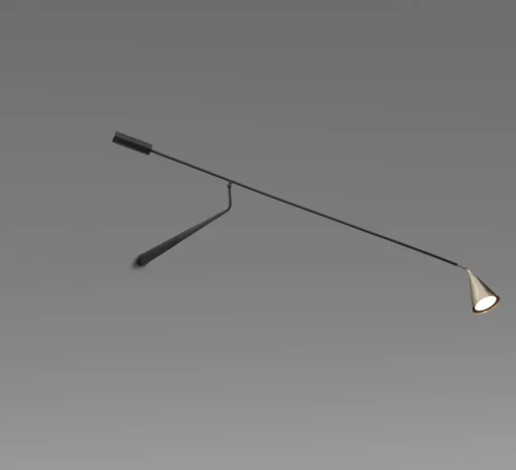 Avec sa finition en noir mat et son diffuseur conique revisité en laiton brossé, cette applique au design architectural affirme une silhouette longiligne sobre et graphique. L’équilibre visuel est renforcé par l’intégration d’une tige articulée à contrepoids, qui offre une liberté d’ajustement et une présence décorative subtile. Elle s’adapte avec aisance aux environnements résidentiels ou professionnels, du salon à l’espace d’accueil.