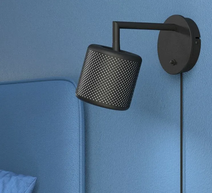 Esthétiquement, cette applique murale combine simplicité et fonctionnalité. Sa forme cylindrique compacte (L11 cm, H11 cm) lui permet de s’adapter aux espaces réduits tout en offrant un éclairage direct. Le câble noir de 2 mètres renforce sa sobriété tout en apportant une touche contemporaine.