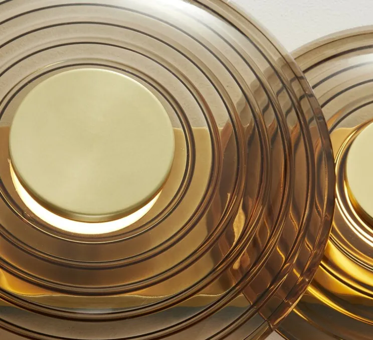 L’applique Griston, avec son design circulaire en verre fumé gris, évoque une élégance rétro. Les disques de verre à motif rayé, encadrés de laiton vieilli, imitent les ondulations des vagues pour un effet chic.