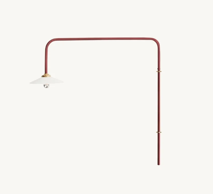 Le design de cette lampe est d’une simplicité presque naïve, et pourtant, les lignes qui la compose remplissent l’espace de manière ludique et colorée. L’applique n°5 est composée d’un tube en acier rouge courbé et d’un abat-jour blanc qui, selon Hannes Van Severen, « a une forme fantastique : parfaitement neutre ».