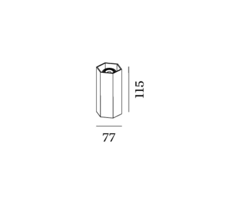 Les dimensions du luminaire sont de 7,7cm de diamètre et 11,5cm de hauteur. Vendu sans ampoule. Nous préconisons une ampoule GU10 LED 6W, 2700 à 3000K.