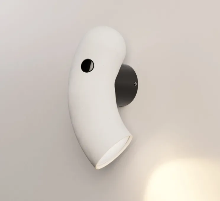 Dans sa version en porcelaine blanche mate, l’applique s’intègre dans son environnement en apportant de doux reflets. Dans un salon ou dans une chambre, Hyphen unit les opposés pour créer de l’harmonie et une atmosphère chaleureuse. Grâce à ses versions droite et gauche, l’applique Hyphen est aussi idéale en tête de lit.
