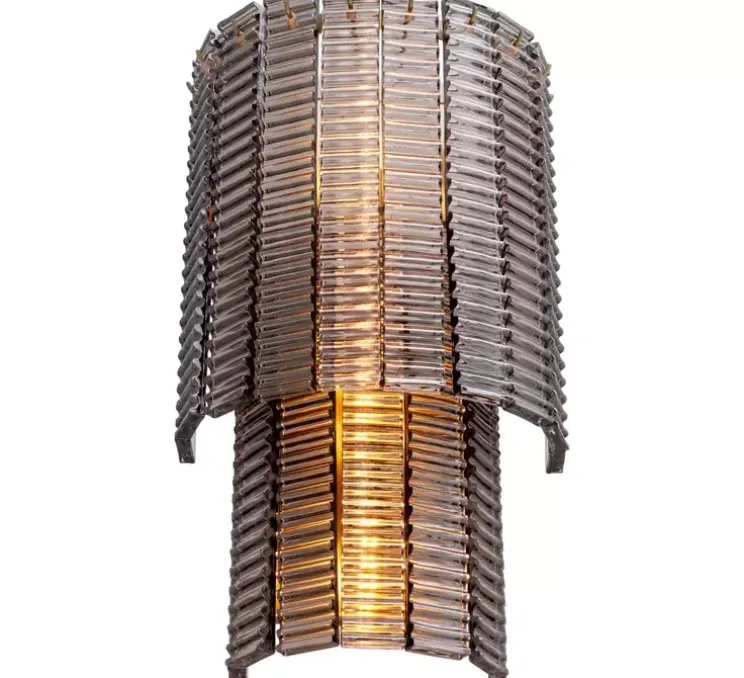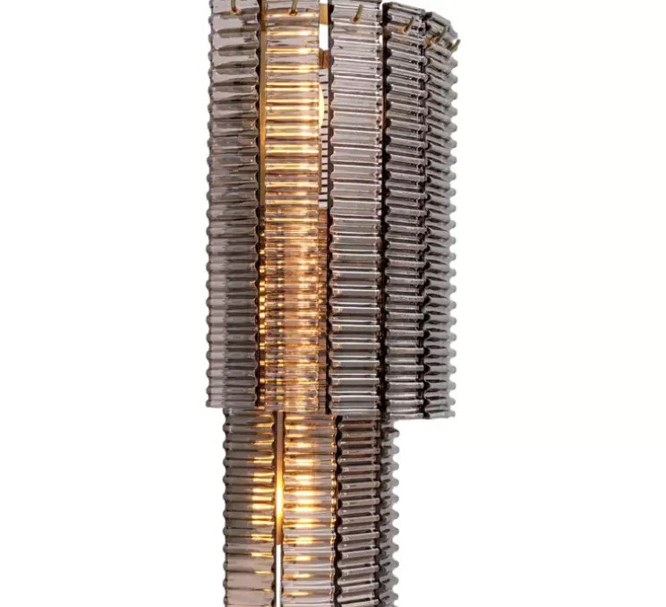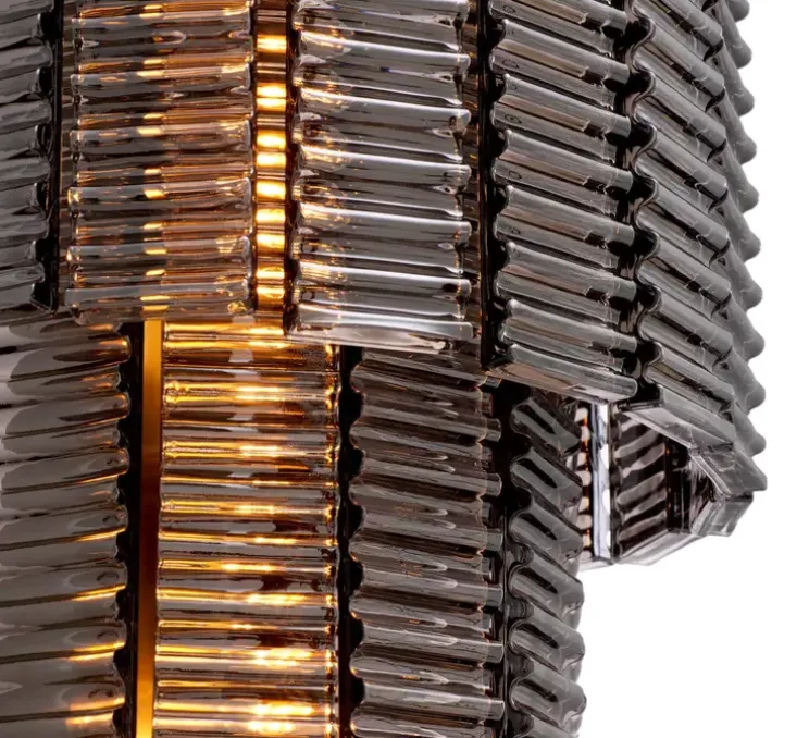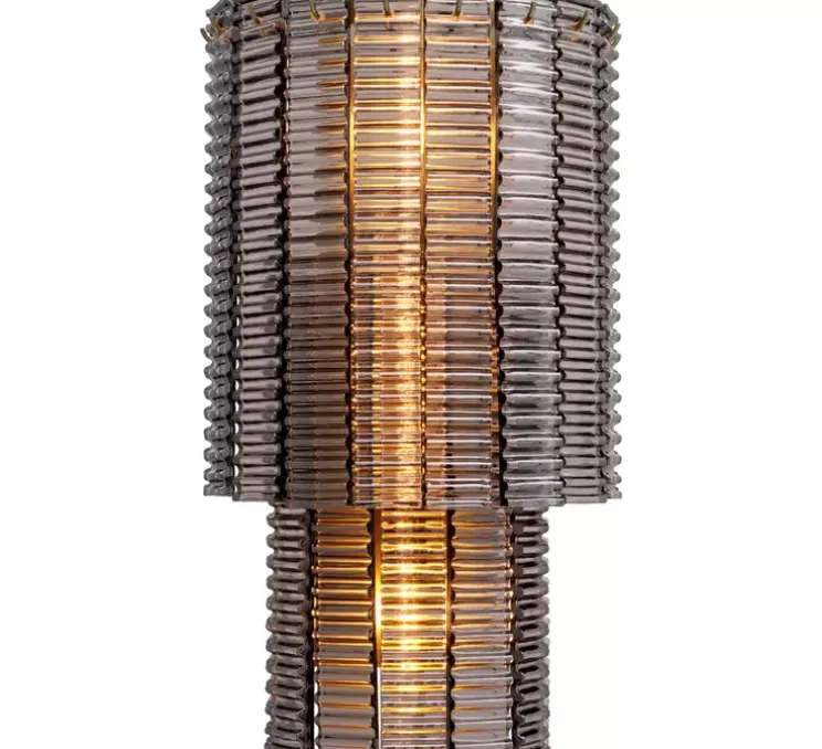 Cette applique rend hommage à ces détails remarquables avec ses éléments élégamment striés, évoquant la finesse et l’élégance des motifs sculptés sur la colonne antique. Fabriqué avec du verre fumé et une finition en laiton brossé, il reflète l’esthétique et la grandeur de cet héritage antique.