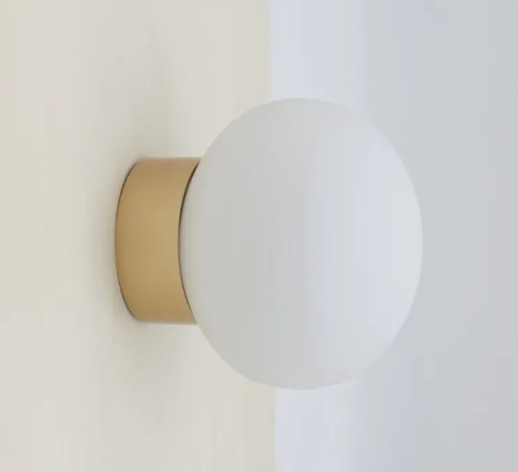 Découvrez l’applique murale Qamar, finition champagne et verre opalin de la maison française Nexel.