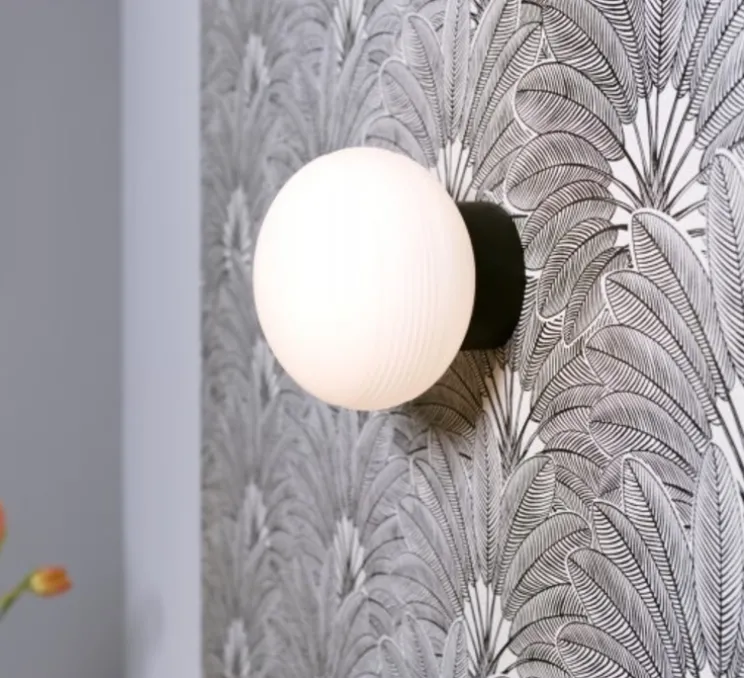 Découvrez l’applique murale Qamar, finition noir et verre opalin de la maison française Nexel.