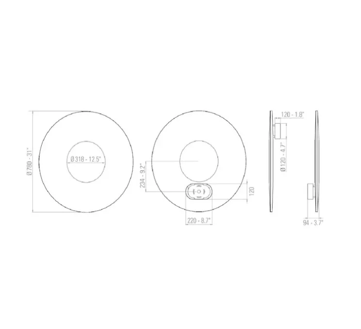 Cette applique murale a un diamètre de 80cm pour 9,2cm de profondeur. La source lumineuse 2700K, 4251lm est fournie.