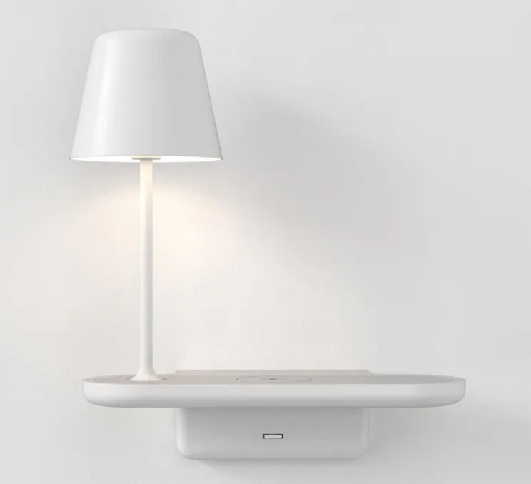 L’applique murale Ito est l’association entre une lampe et une station de recharge sans fil pour vos appareils électroniques. Elle est idéalement positionner à côté de votre tête de lit, au dessus d’une table de chevet. Le luminaire a été conçu en silicone et aluminium moulé sous pression. Même éteinte, l’applique continue de charger vos appareils. Par ailleurs, la lampe peut être orienter du côté droit ou gauche, selon vos envies.