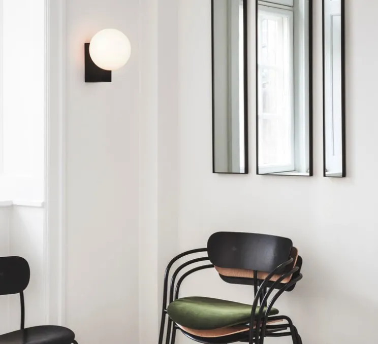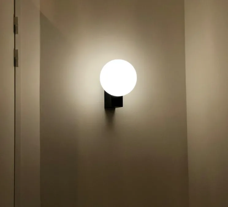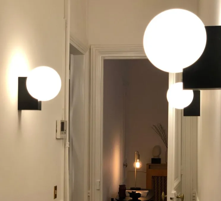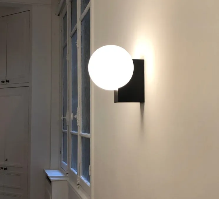On trouve sur cet éclairage un abat-jour rond en verre opale qui rappelle la lune. Que la lune soit pleine ou non, l’intention est d’apprécier le design et l’ambiance qu’il insuffle.